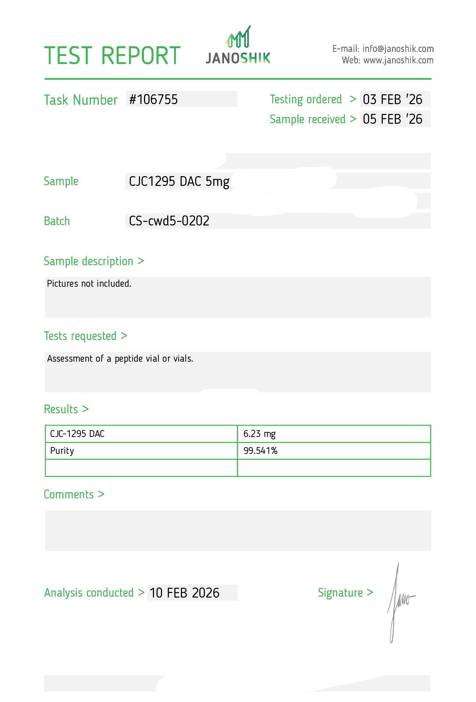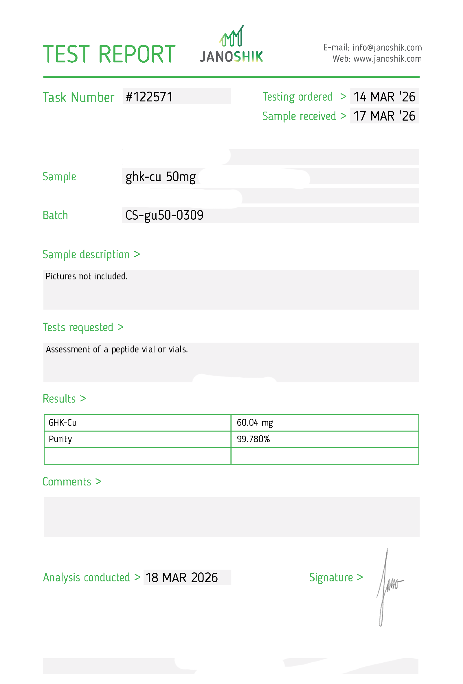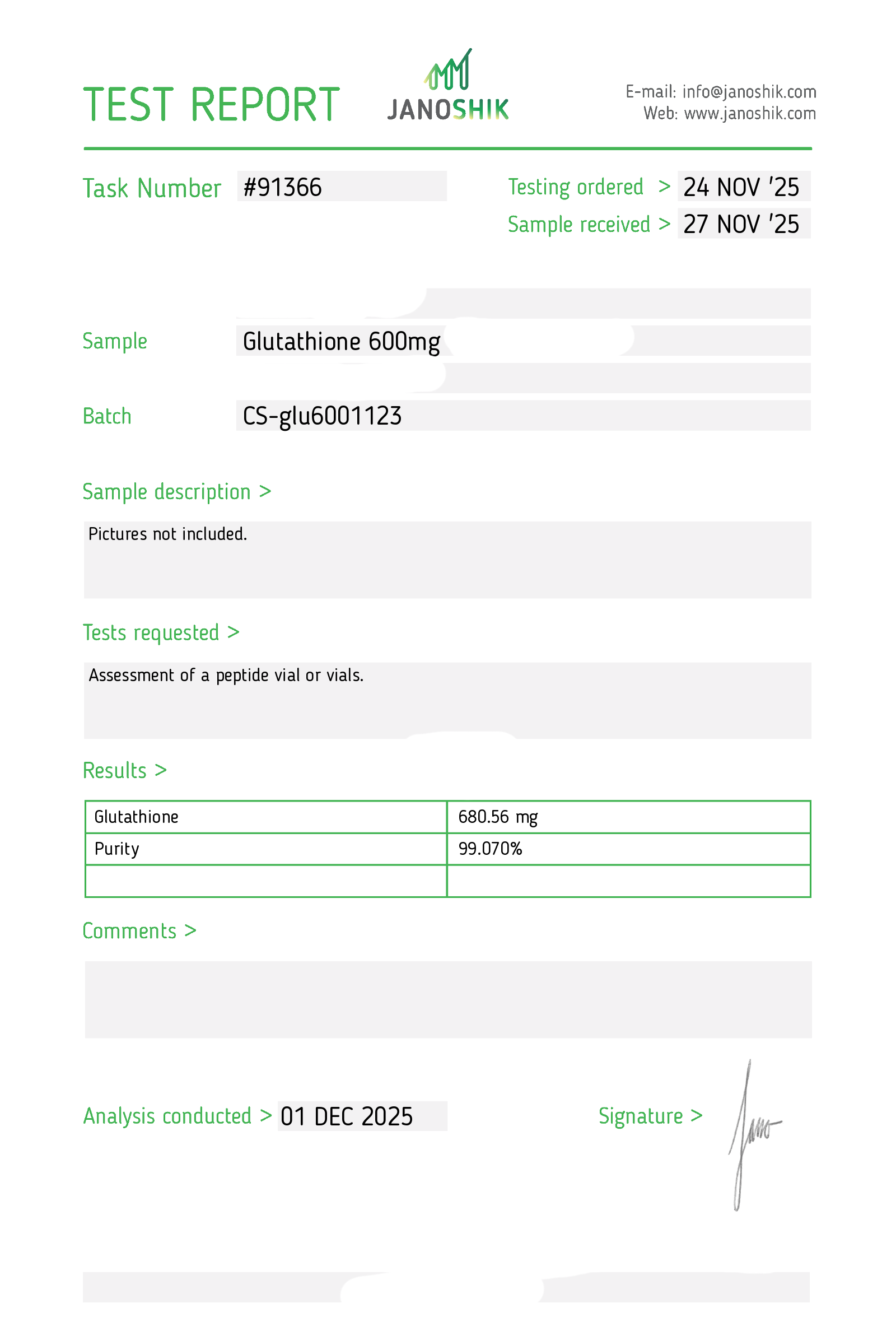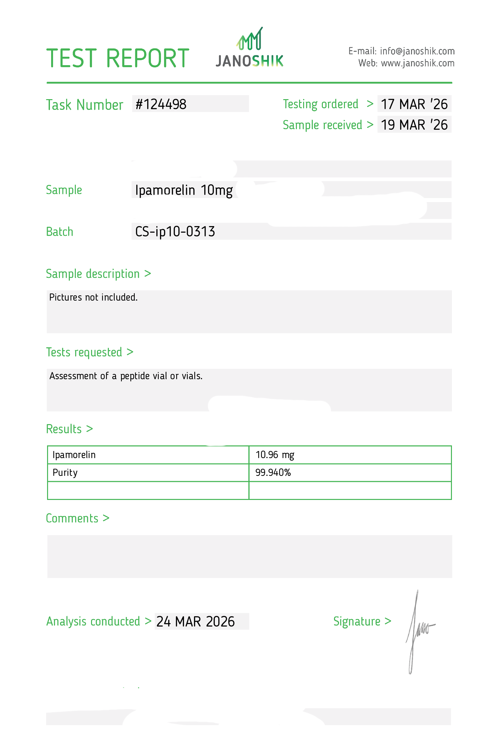 Certificates of Analysis (COA) Certificates of Analysis (COA'S) All products are third-party tested to ensure purity, accuracy, and quality. Bronchogen 20mg View cOA Cartalax 20mg View cOA Epithalon 50mg View cOA Chonluten 20mg View cOA ILLUMINEURO Pinealon/NA Selank/NA Semax/ Pe22-28 50mg (BLEND) View cOA Cardiogen 20mg View cOA N-Acetyl Epithalon Amidate 20mg View cOA Ovagen 20mg View cOA Pancragen 20mg View cOA Pinealon 20mg View cOA ADIPOTIDE View cOA AOD-9604 5MG View cOA ARA-290 16MG View cOA BPC-157 40MG View cOA BPC-157 10MG View cOA CJC-1295, IPAMORELIN 5/5 View cOA CJC-1295, IPAMORELIN 10/10 View cOA CJC-1295 with DAC 5mg View cOA DSIP 5mg View cOA Epithalon (Epitalon) 50mg View cOA FOX04 10MG View cOA GHK-Cu 50mg Copper Peptide View cOA GHRP-2 10mg View cOA GHRP-6 10mg View cOA BPC-157, TB-500, GHK-Cu 70mg View cOA L-Glutathione 600mg View cOA Humanin 10mg View cOA IGF-1 LR3 1MG View cOA Pinealon/NA Selank/NA Semax/ Pe22-28 50mg View cOA Ipamorelin 10mg View cOA KPV (Ac-KPV-NH2) 30mg View cOA LL-37 5mg (CAP-18) View cOA MOTS-c 10mg View cOA Melanotan I (MT I) 10mg View cOA Melanotan II (MT II) 10mg View cOA N-Acetyl Epithalon Amidate 20mg View cOA N-Acetyl Selank Amidate 10mg View cOA NA SEMAX 10MG View cOA NA SEMAX 50MG View cOA NAD+ 500mg View cOA OVAGEN 20MG View cOA OXYTOCIN 10MG View cOA PANCRAGEN 20MG View cOA Pinealon 20mg View cOA PROSTAMAX 20MG View cOA PT-141 10mg View cOA SELANK 10MG View cOA SERMORELIN 5MG View cOA Tesamorelin, CJC-1295 (no DAC), Ipamorelin 12mg View cOA Tesamorelin 10mg View cOA Tesamorelin, Ipamorelin 10mg View cOA Tesamorelin, CJC-1295 (no DAC), Ipamorelin 12mg View cOA Testagen 20mg View cOA THYMOSIN 10MG View cOA VESILUTE 20MG View cOA VESUGEN 20MG View cOA