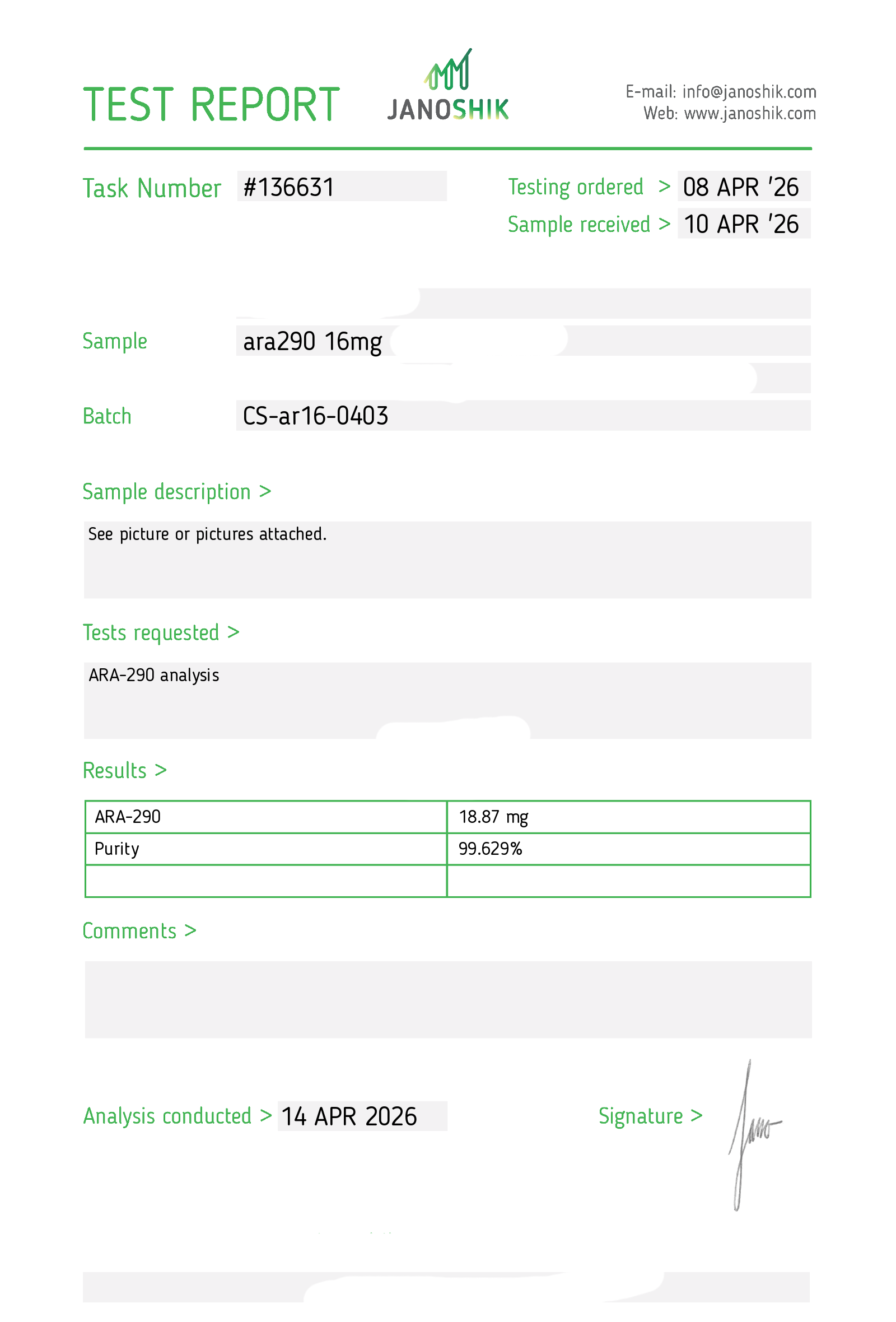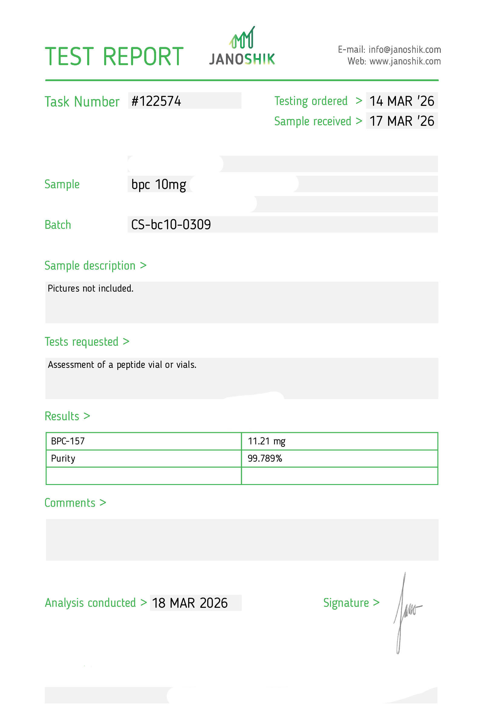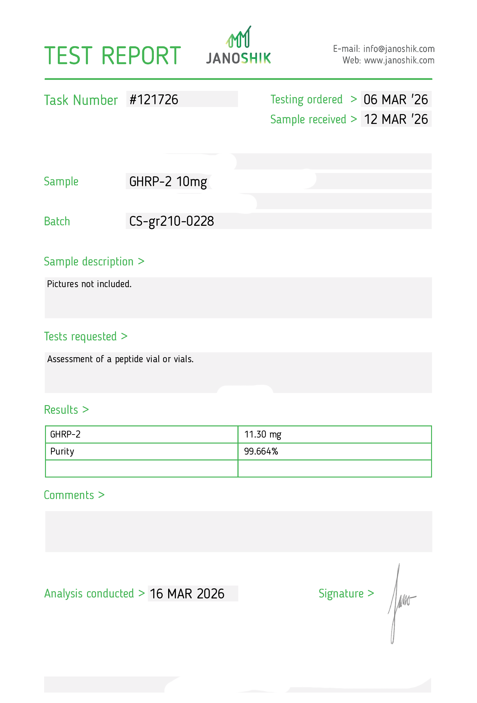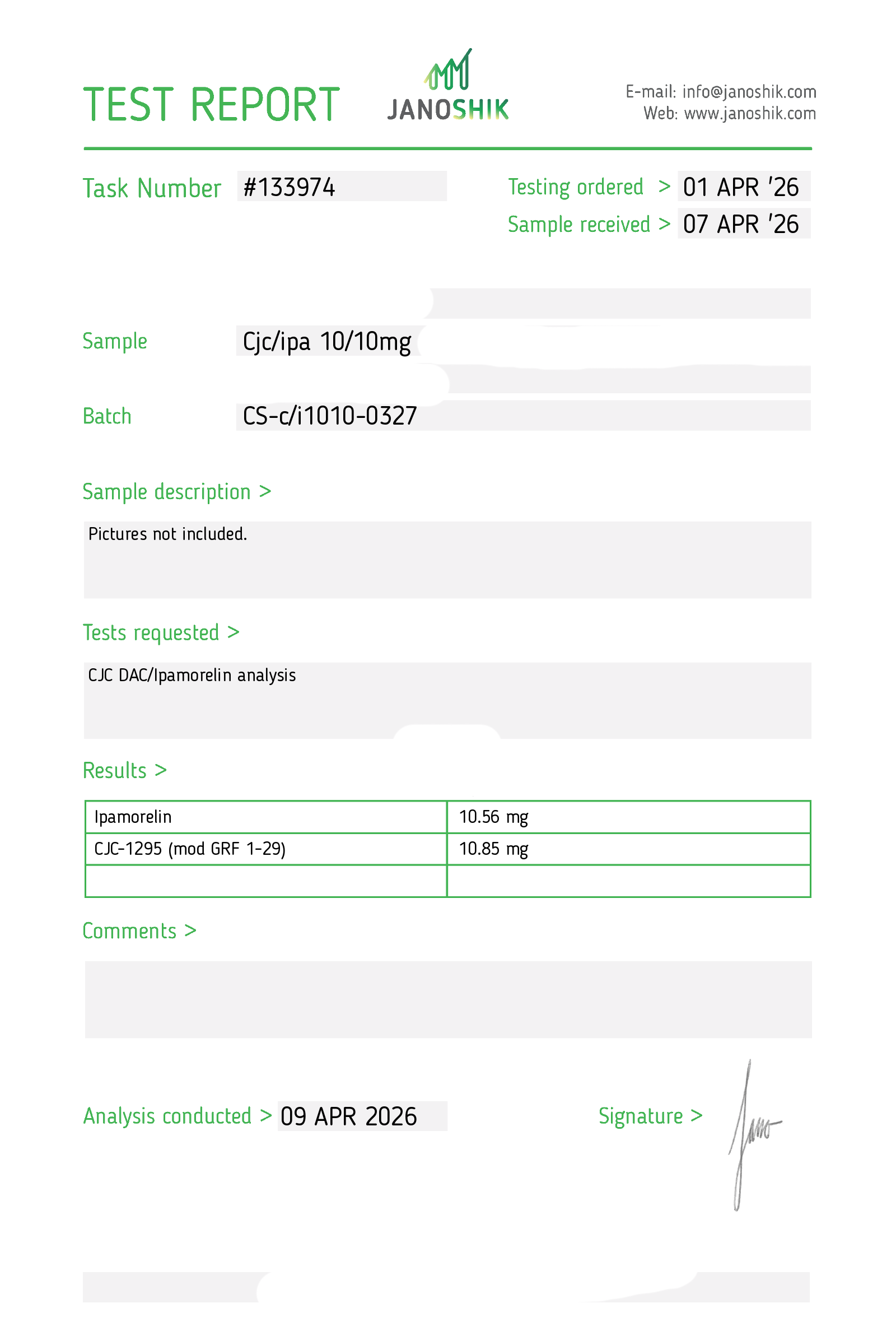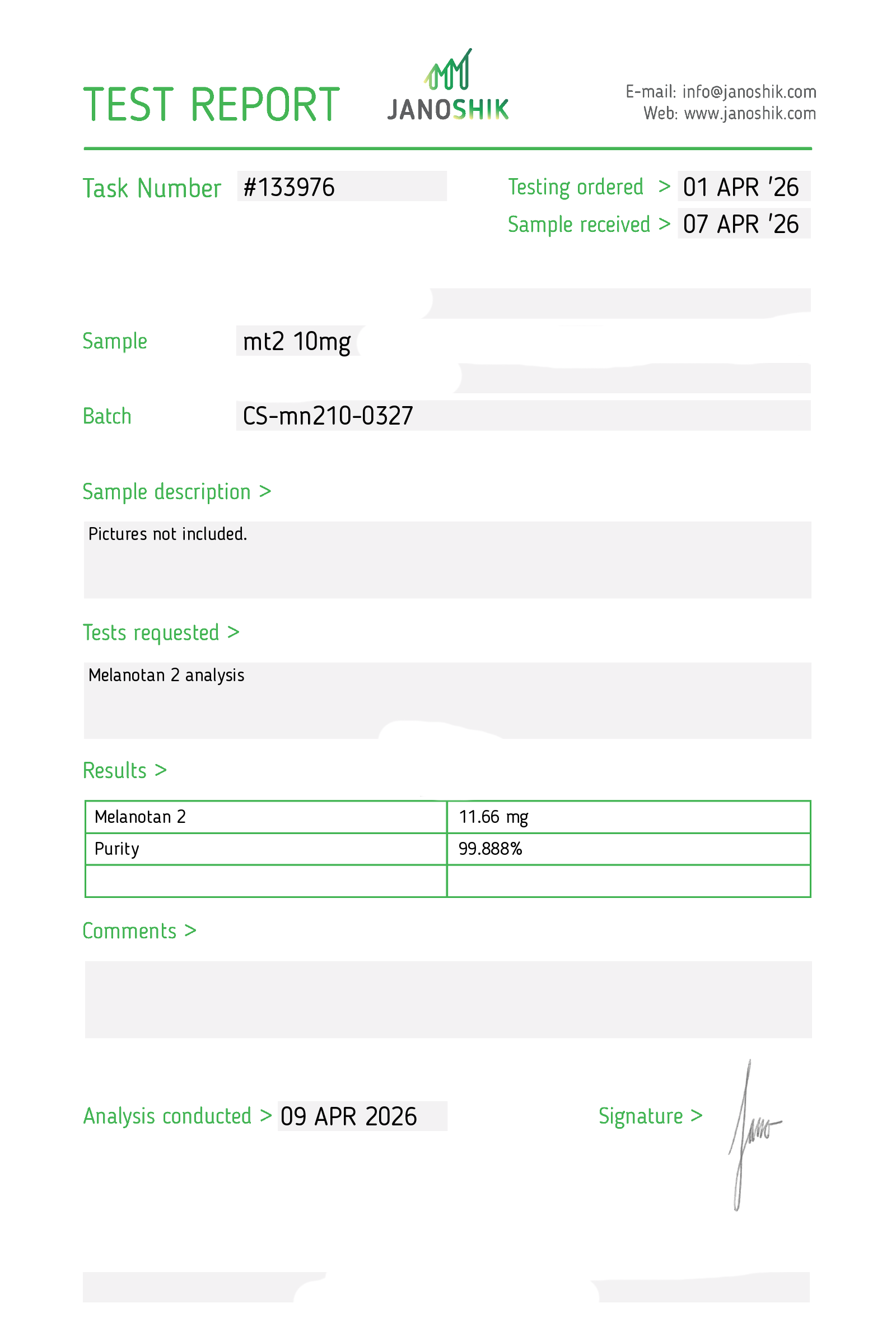 Certificates of Analysis (COA) Certificates of Analysis (COA'S) All products are third-party tested to ensure purity, accuracy, and quality. Bronchogen 20mg View cOA Cartalax 20mg View cOA Epithalon 50mg View cOA Chonluten 20mg View cOA ILLUMINEURO Pinealon/NA Selank/NA Semax/ Pe22-28 50mg (BLEND) View cOA Cardiogen 20mg View cOA N-Acetyl Epithalon Amidate 20mg View cOA Ovagen 20mg View cOA Pancragen 20mg View cOA Pinealon 20mg View cOA ADIPOTIDE View cOA AOD-9604 5MG View cOA ARA-290 16MG View cOA BPC-157 40MG View cOA BPC-157 10MG View cOA CJC-1295, IPAMORELIN 5/5 View cOA CJC-1295, IPAMORELIN 10/10 View cOA CJC-1295 with DAC 5mg View cOA DSIP 5mg View cOA Epithalon (Epitalon) 50mg View cOA FOX04 10MG View cOA GHK-Cu 50mg Copper Peptide View cOA GHRP-2 10mg View cOA GHRP-6 10mg View cOA BPC-157, TB-500, GHK-Cu 70mg View cOA L-Glutathione 600mg View cOA Humanin 10mg View cOA IGF-1 LR3 1MG View cOA Pinealon/NA Selank/NA Semax/ Pe22-28 50mg View cOA Ipamorelin 10mg View cOA KPV (Ac-KPV-NH2) 30mg View cOA LL-37 5mg (CAP-18) View cOA MOTS-c 10mg View cOA Melanotan I (MT I) 10mg View cOA Melanotan II (MT II) 10mg View cOA N-Acetyl Epithalon Amidate 20mg View cOA N-Acetyl Selank Amidate 10mg View cOA NA SEMAX 10MG View cOA NA SEMAX 50MG View cOA NAD+ 500mg View cOA OVAGEN 20MG View cOA OXYTOCIN 10MG View cOA PANCRAGEN 20MG View cOA Pinealon 20mg View cOA PROSTAMAX 20MG View cOA PT-141 10mg View cOA SELANK 10MG View cOA SERMORELIN 5MG View cOA Tesamorelin, CJC-1295 (no DAC), Ipamorelin 12mg View cOA Tesamorelin 10mg View cOA Tesamorelin, Ipamorelin 10mg View cOA Tesamorelin, CJC-1295 (no DAC), Ipamorelin 12mg View cOA Testagen 20mg View cOA THYMOSIN 10MG View cOA VESILUTE 20MG View cOA VESUGEN 20MG View cOA