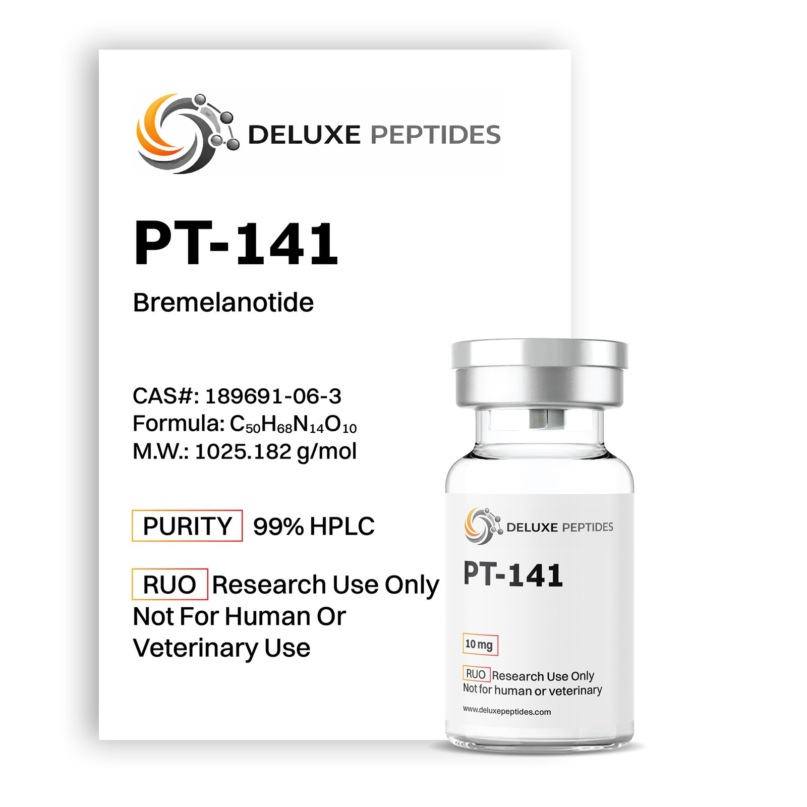 PT-141 10mg peptide is intended strictly for laboratory research purposes. It is not approved by the FDA for human or veterinary use. It is not intended to diagnose, treat, cure, or prevent any disease.