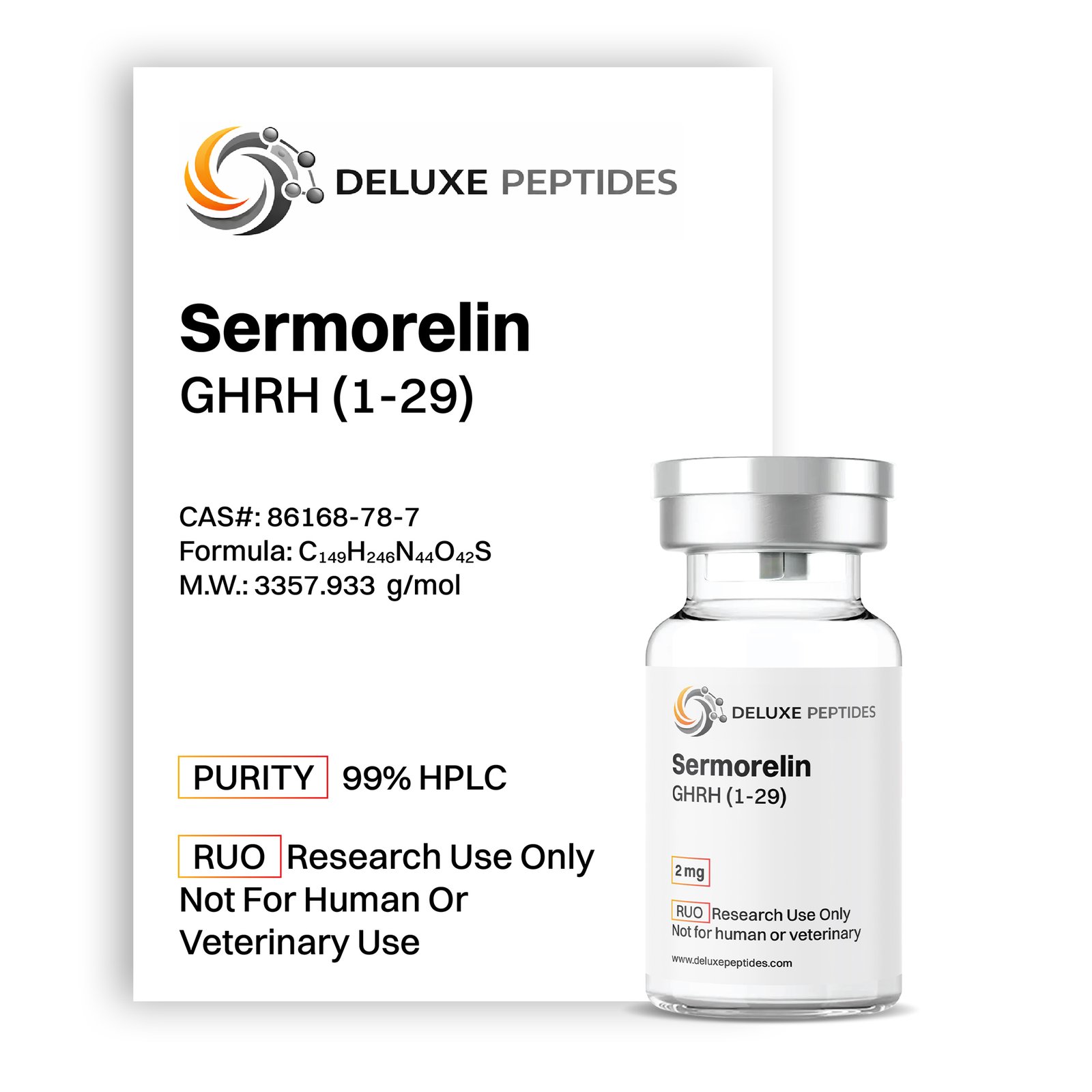 At Deluxe Peptides, each batch of Sermorelin 2mg peptide undergoes analytical verification prior to release to ensure molecular consistency, structural integrity, and laboratory-grade purity.